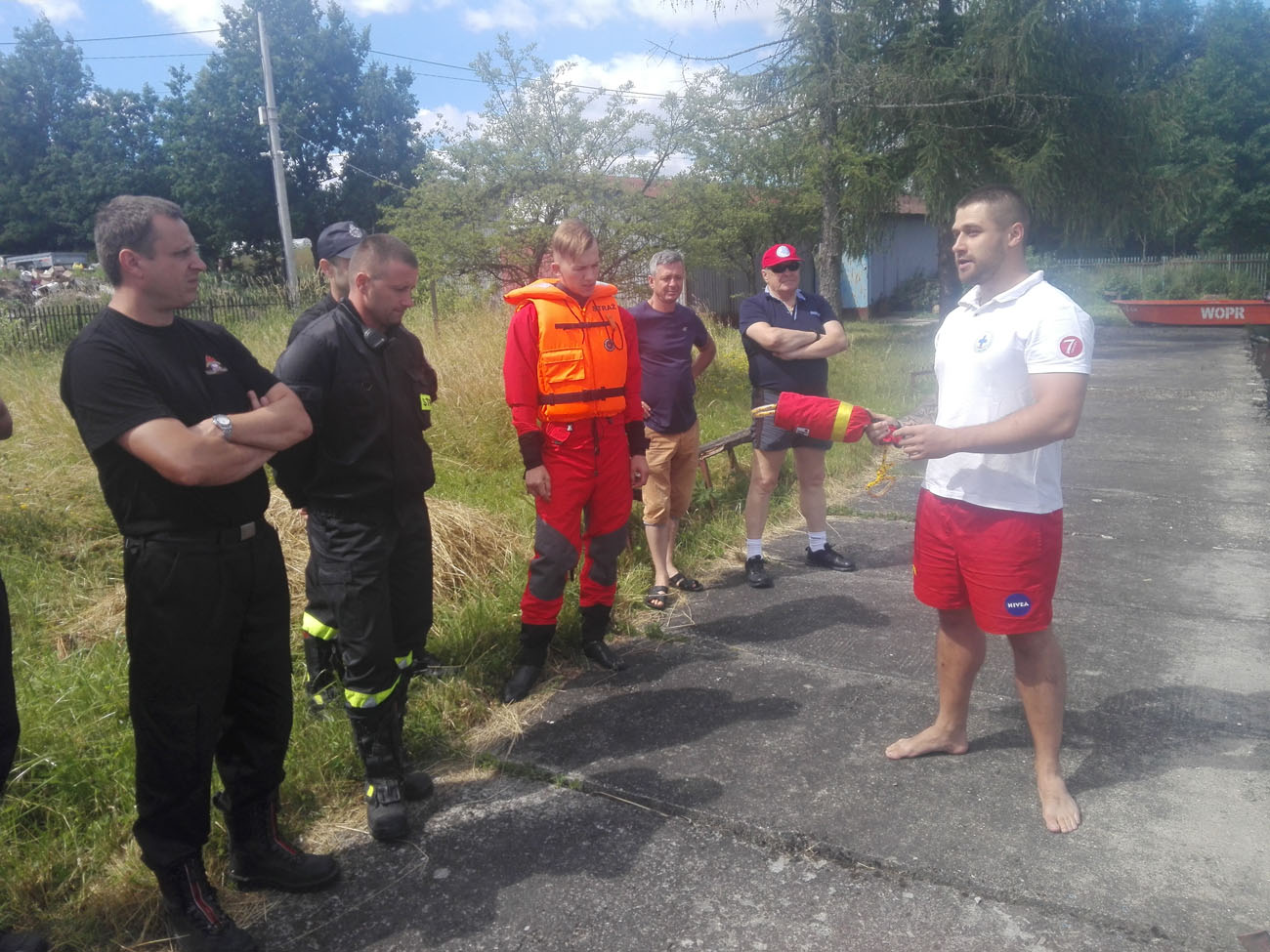 W dniach od 02 - 04 lipca 2019 r. na „Zalewie Wolbromskim” odbyły się ćwiczenia z ratownictwa wodnego. W drugim dniu ćwiczeń (03.07.19r) w ramach współpracy z Wodnym Ochotniczym Pogotowiem Ratunkowym wiadomości teoretyczne, oraz praktyczne zastosowanie sprzętu do ratownictwa wodnego prezentował dla strażaków Instruktor WOPR Grzegorz Haberko oraz Prezes Oddziału Rejonowego WOPR w Olkuszu Stanisław Starzyk. Celem ćwiczeń było powtórzenie i utrwalenie wiadomości z zakresu ratownictwa wodnego. Zademonstrowano i przećwiczono techniki ratowania osób topiących się.